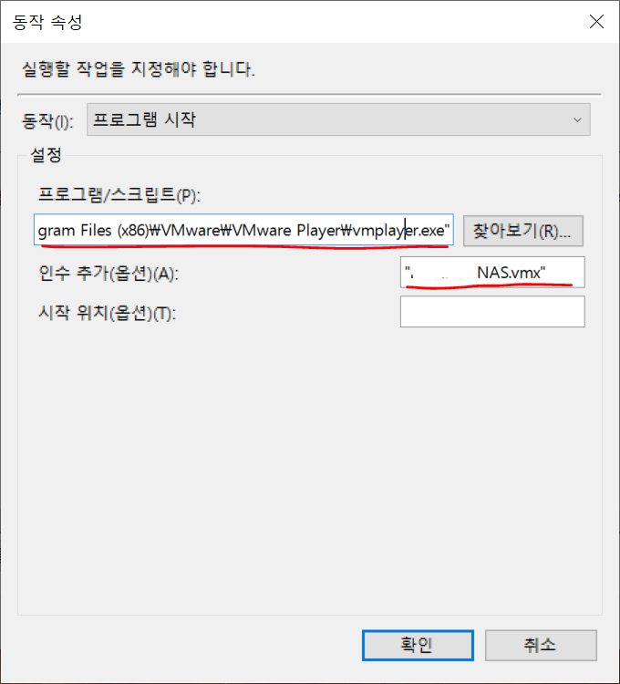인터넷에 배치파일 방식, 작업스케쥴러 방식이 따로 있고, 실행창을 띄우지 않고 백그라운드에서 실행하는 법이 따로 나와있던데, 아마도 VMW Workstation에서 VMW Player가 되면서 조금 바뀐듯 하다. 아래 방식대로 하면, 부팅 직후 VMWare가 백그라운드에서 실행되며, 명령 프롬프트 창도 열리지 않는다. 완전한 백그라운드 실행법이며, 로그인을 하지 않아도 실행되므로 WoL환경에도 활용 가능하다.